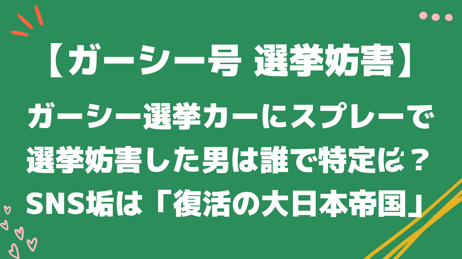 今回は「ガーシー選挙カーにスプレーで選挙妨害した男は誰で特定は?SNS垢は復活の大日本帝国!」と題して以下についてまとめています。