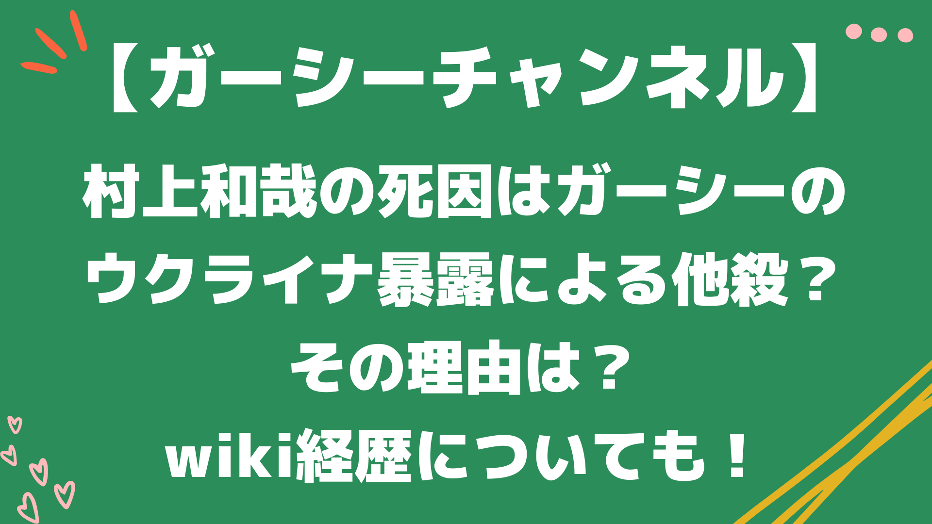 今回は「村上和哉の死因はガーシーのウクライナ暴露による他殺と言われる理由!wiki経歴についても!」と題して以下についてまとめています。