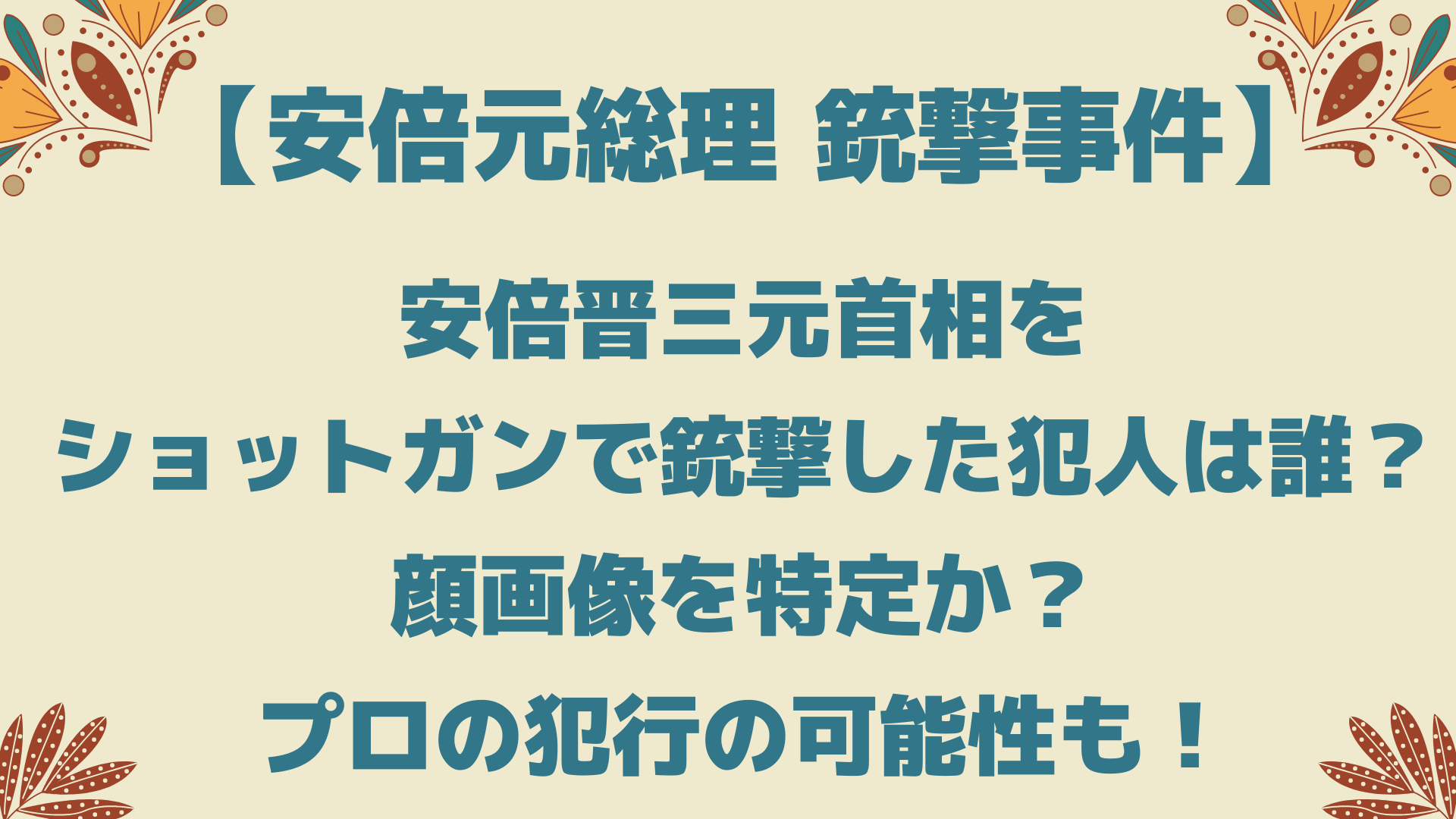 今回は「安倍晋三元首相をショットガンで銃撃した犯人は誰で顔画像を特定?プロの犯行の可能性も!」と題して以下についてまとめています。