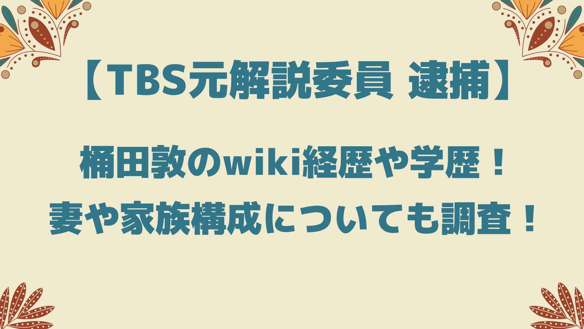 今回は「桶田敦(TBS元解説委員)のwiki経歴や学歴!妻や家族構成についても調査!」と題して以下についてまとめています。