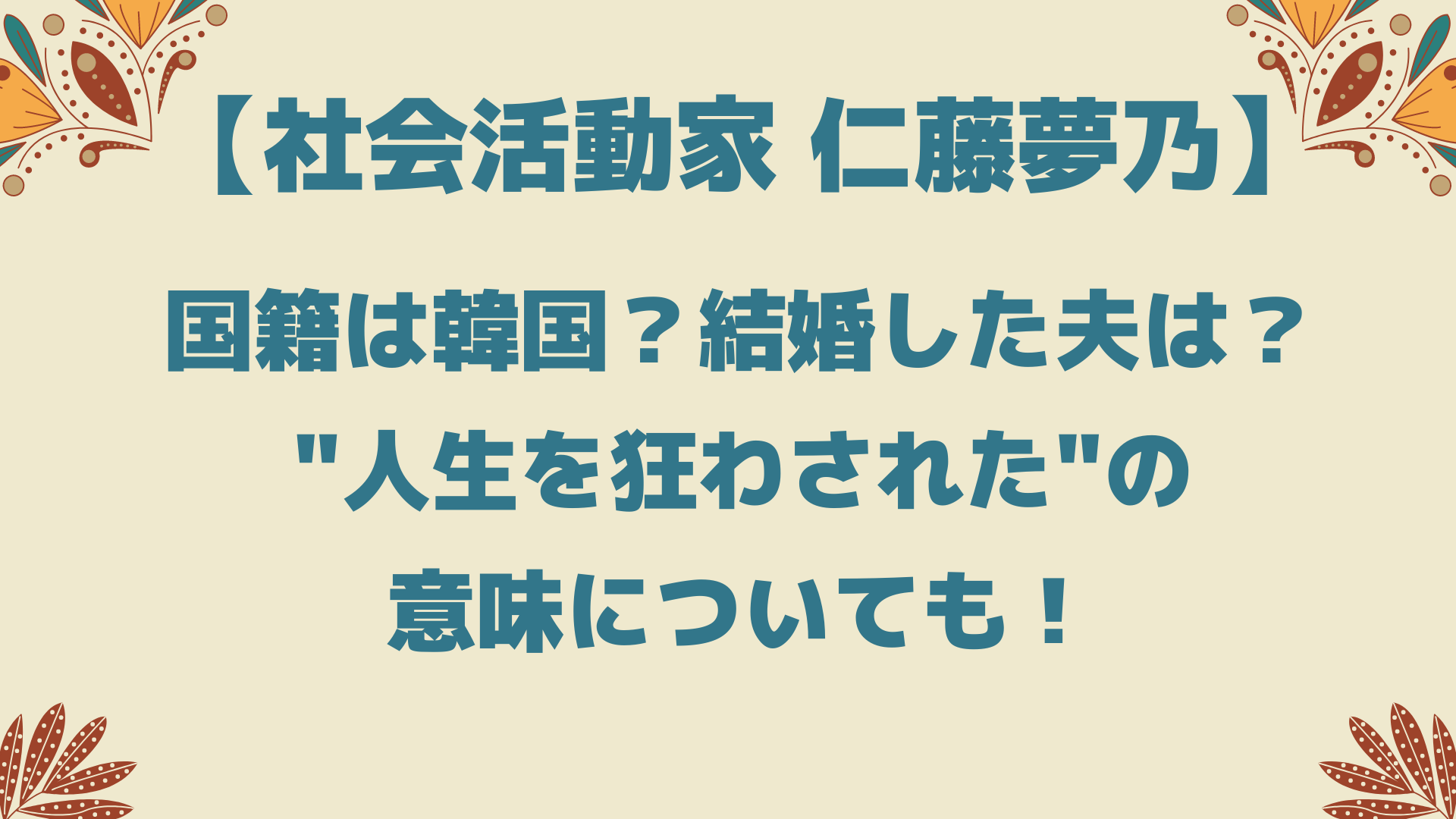 今回は「仁藤夢乃の国籍は韓国?結婚した夫は?人生を狂わされたの意味についても!」と題して以下についてまとめています。