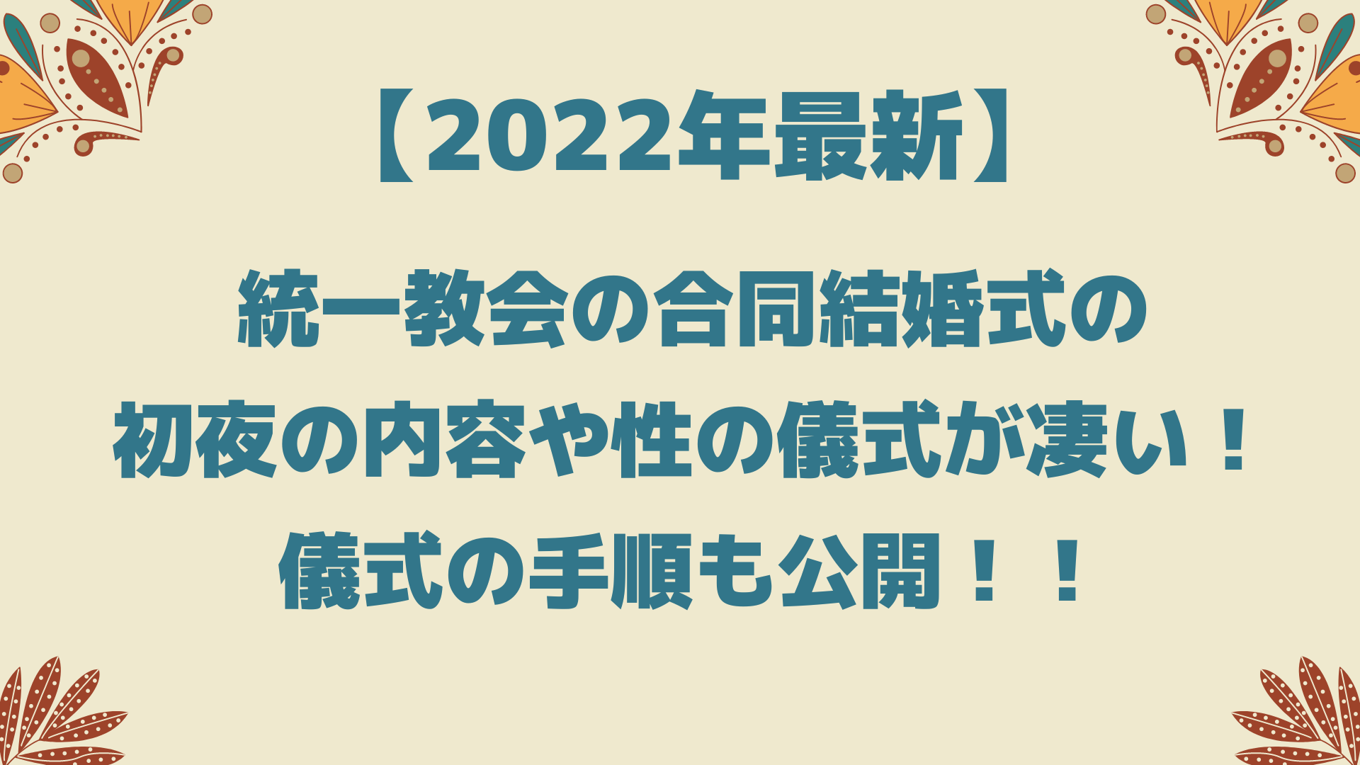 今回は「【2022年最新】統一教会の合同結婚式の初夜の内容や性の儀式が凄いと話題に!」と題して以下についてまとめています。
