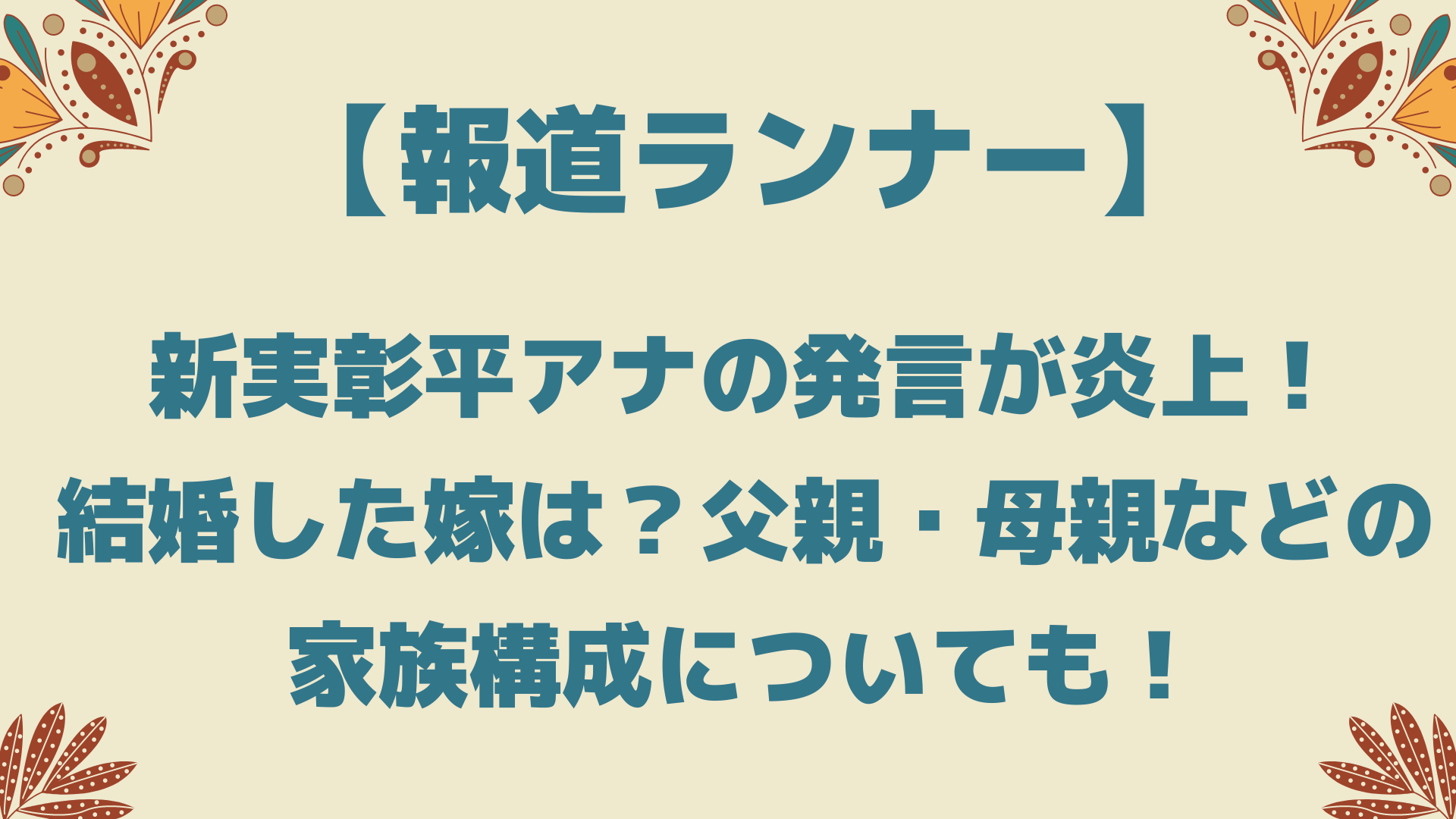 今回は「新実彰平の発言が炎上!結婚した嫁は?父親・母親などの家族構成についても調査!」と題して以下についてまとめています。