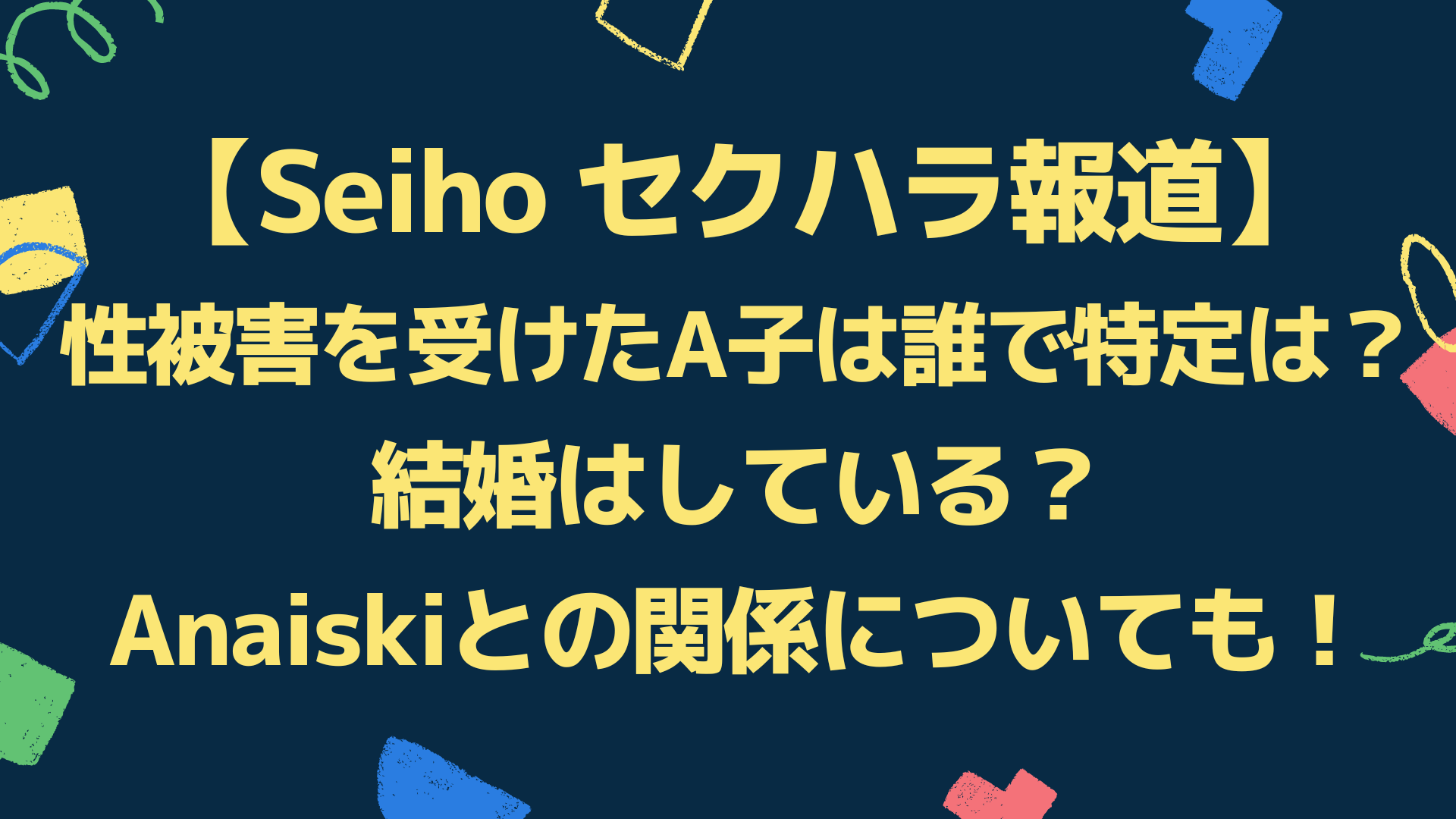 今回は「Seihoから性被害受けたA子は誰で特定は?結婚やAnaiskiとの関係についても!」と題して以下についてまとめています。
