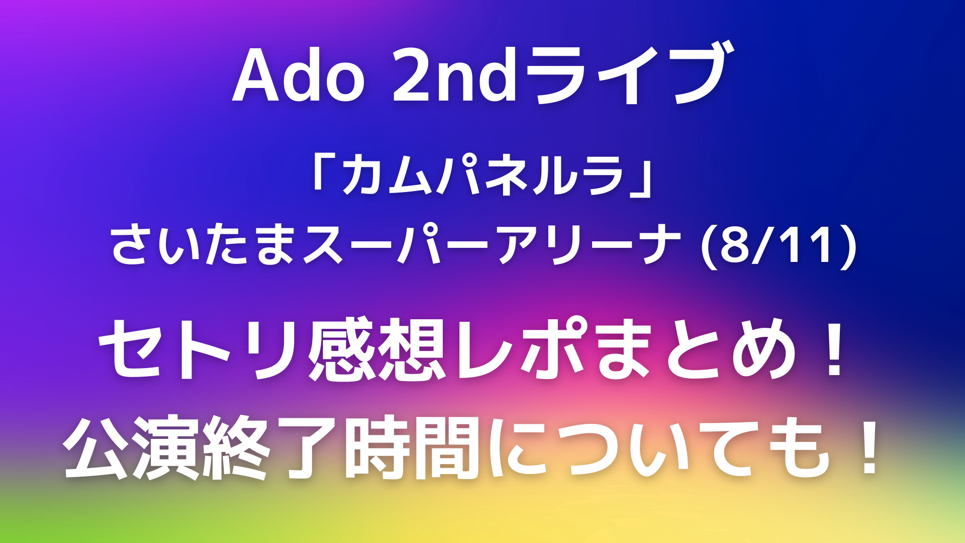 今回は「Adoライブさいたまスーパーアリーナのセトリ感想レポ!終了時間も!(8/11)」と題して以下についてまとめています。
