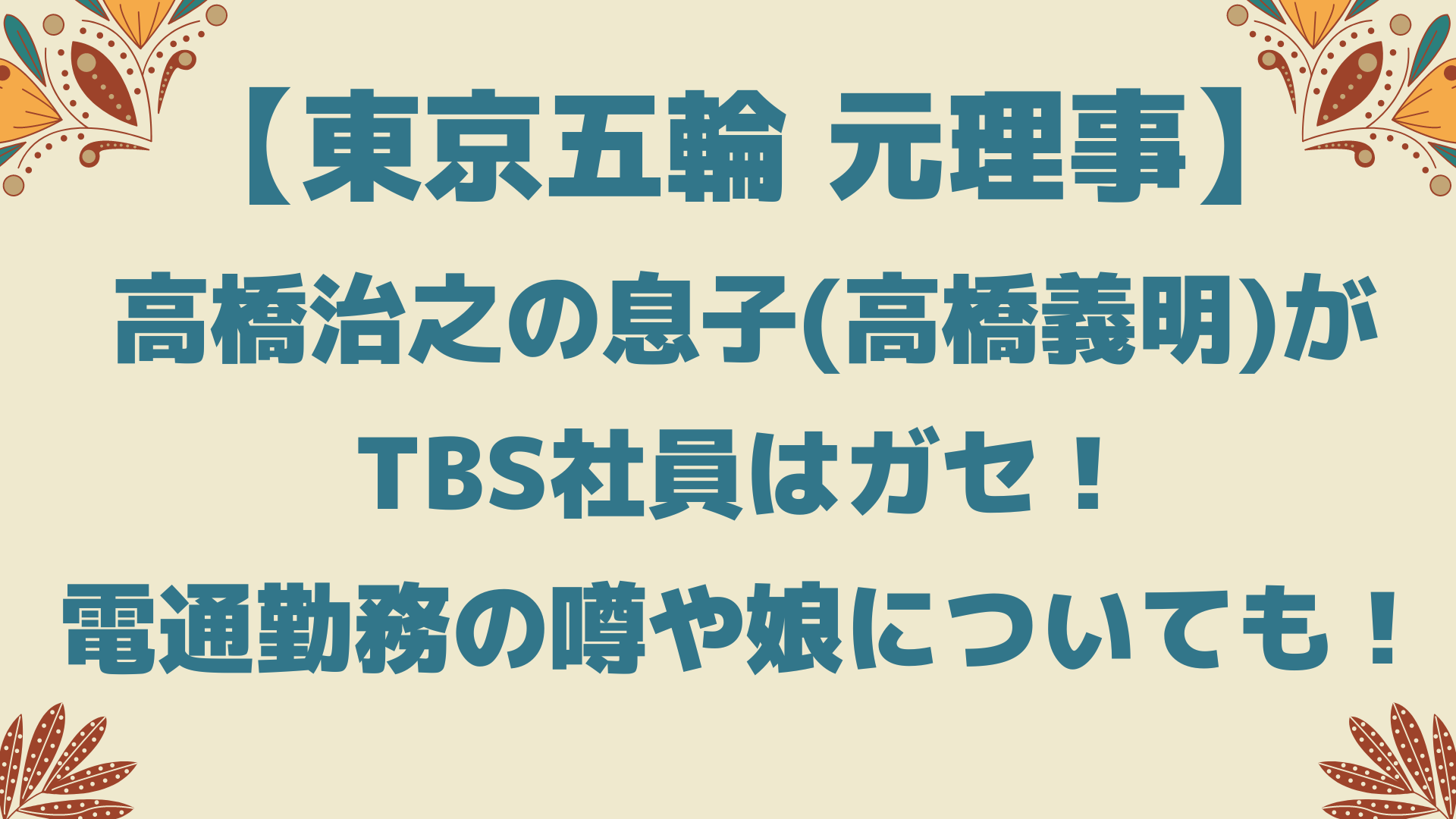 今回は「高橋治之の息子(高橋義明)がTBS社員はガセ!電通との噂や娘についても!」と題して以下についてまとめています。