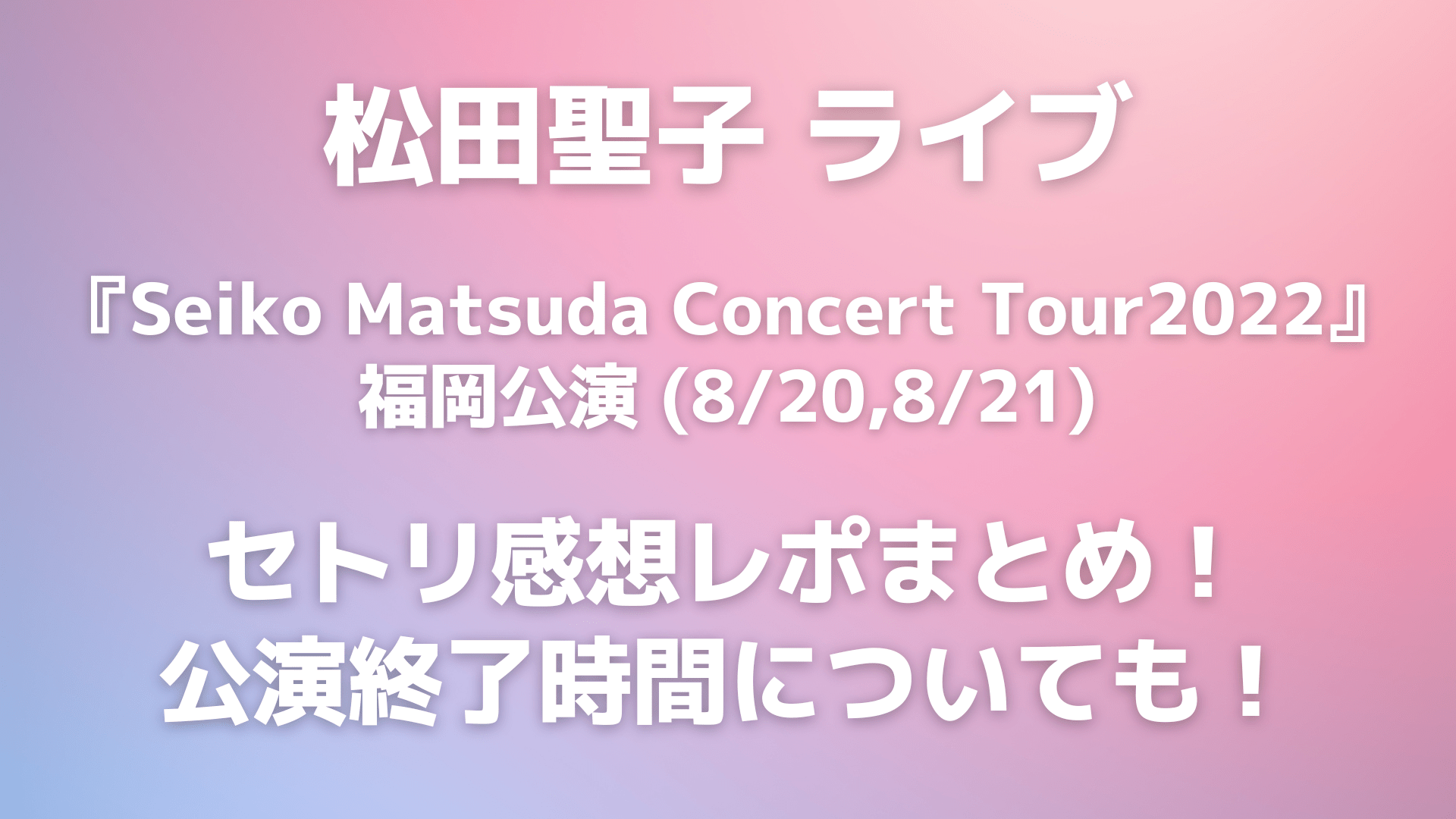 今回は「松田聖子ライブ2022福岡のセトリ感想レポ!終了時間についても!(8/20~8/21)」と題して以下についてまとめています。