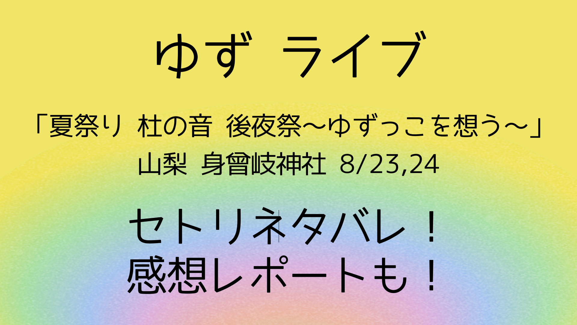 今回は「ゆずライブ山梨(身曾岐)の杜の音後夜祭のセトリ感想レポまとめ!(8/23~8/24)」と題してまとめましたがいかがでしたでしょうか。