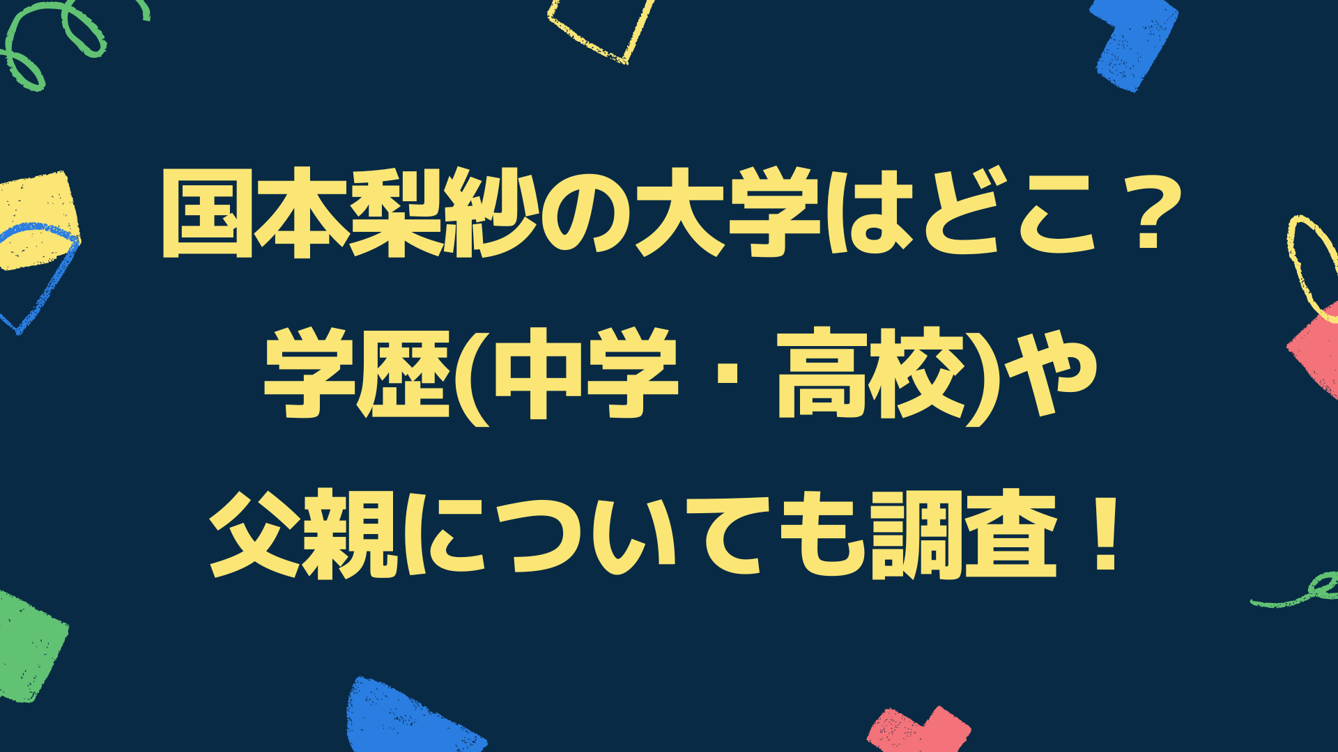 本記事を読んでいただければ、国本梨紗さんの中学、高校、大学までの学歴や、父親について知ることが出来ます。