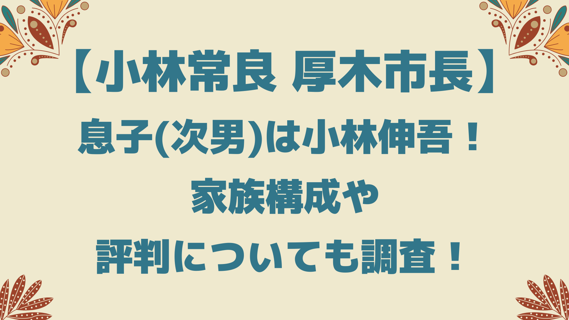 今回は「小林常良厚木市長の息子は小林伸吾!家族構成や評判についても!」と題して以下についてまとめています。