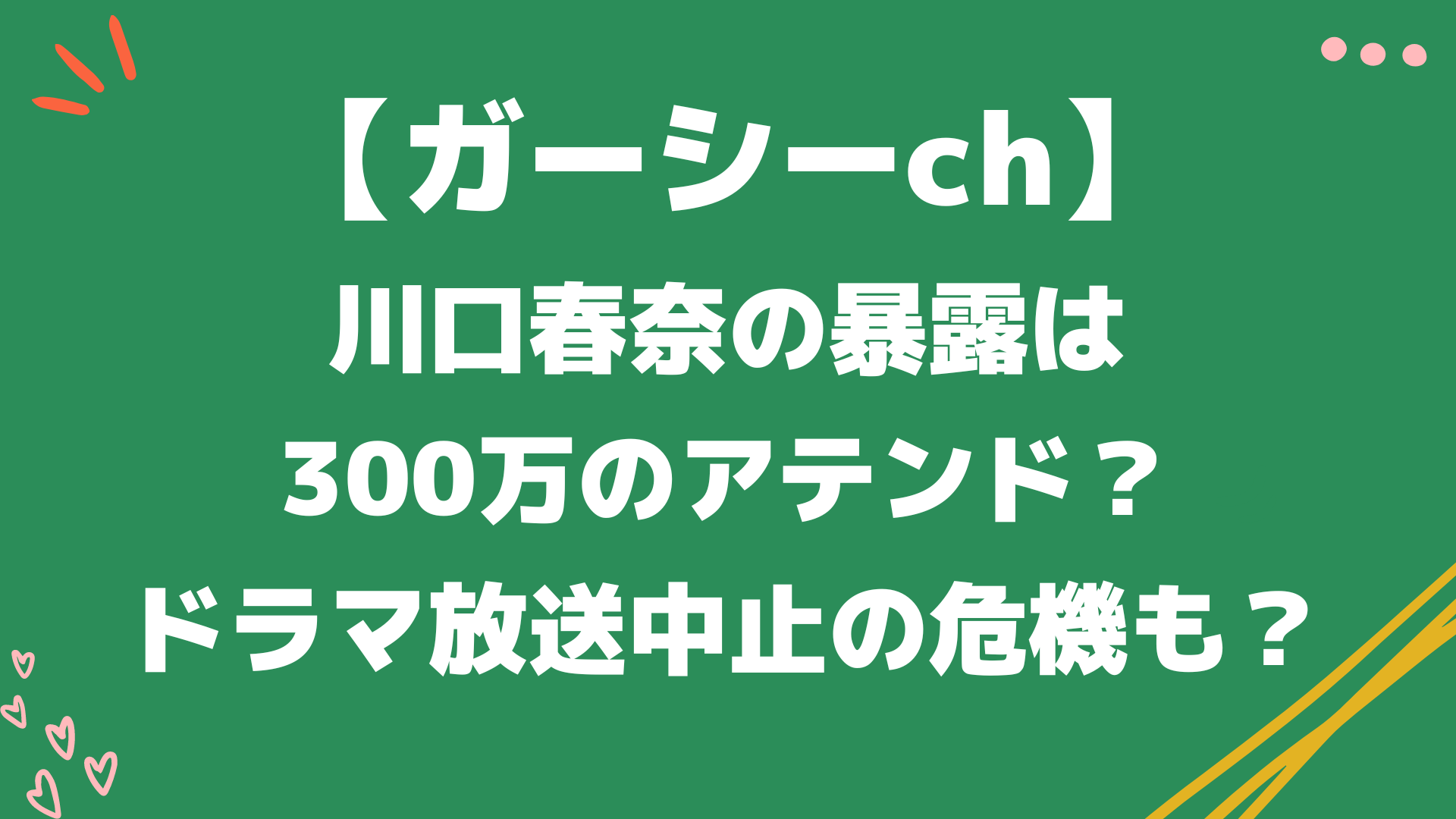 今回は「【ガーシー】川口春奈の暴露は300万のアテンド?ドラマ放送中止の危機も?」と題して以下についてまとめています。