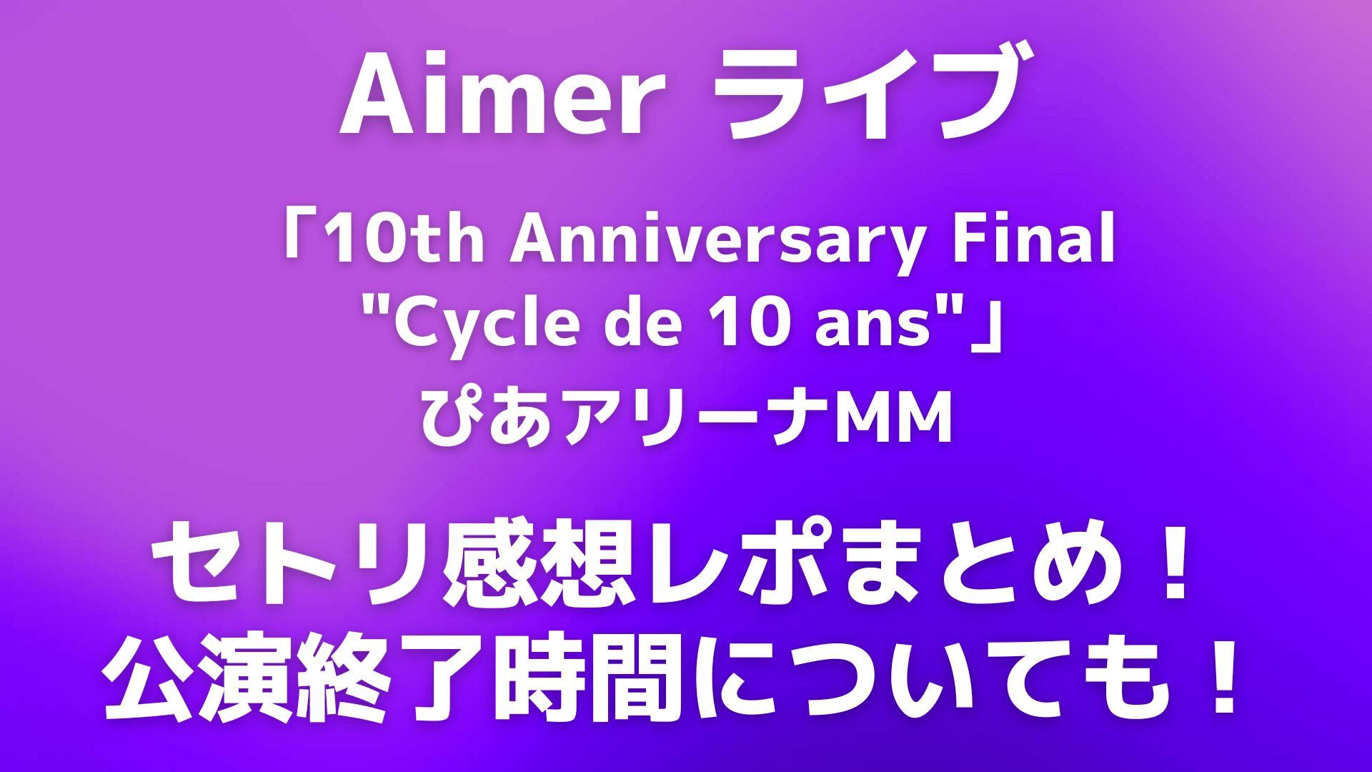 今回は「Aimerライブ2022ぴあアリーナのセトリ感想レポ!公演終了時間についても!(10/1~10/2)」と題して以下についてまとめています。
