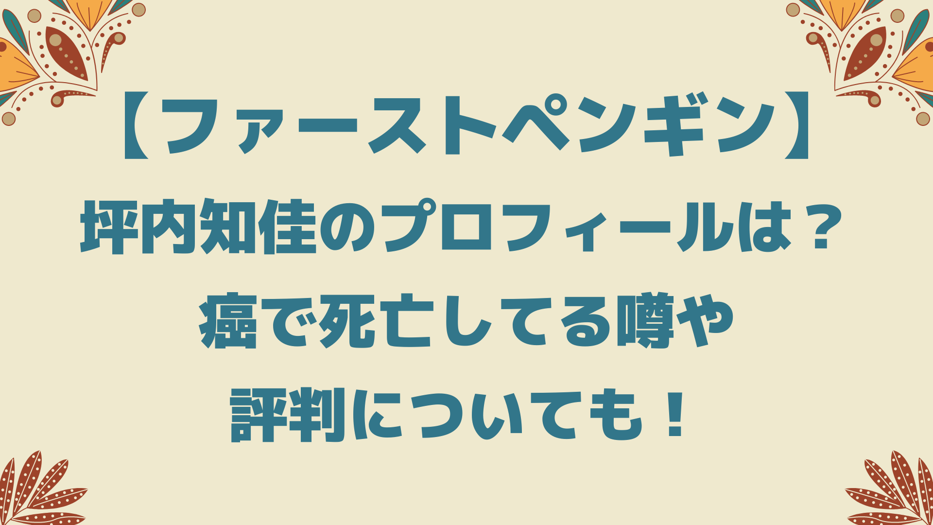今回は「坪内知佳の現在のプロフィールは?癌で死亡してる噂や評判についても!」と題して以下についてまとめています。