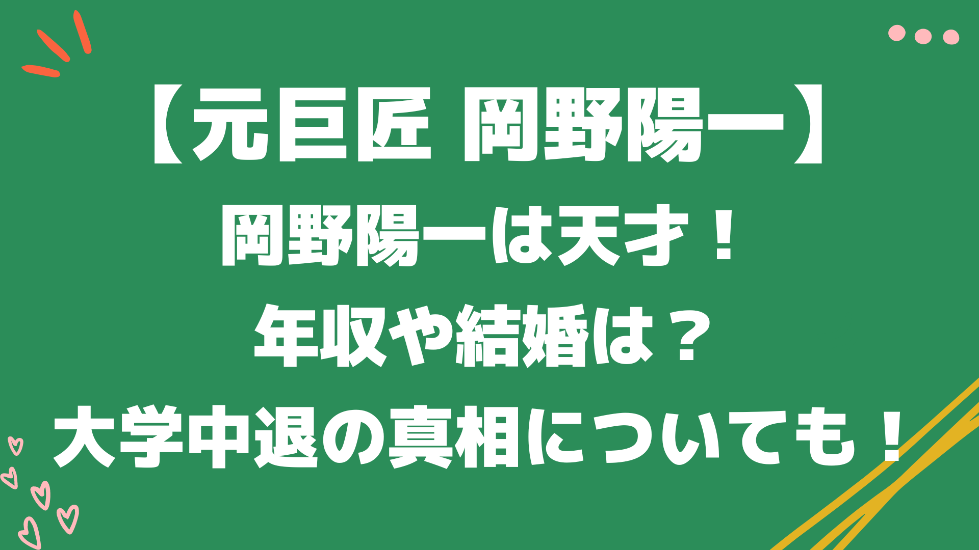 この記事を読めば、岡野陽一さんの年収や大学中退の理由について分かります。