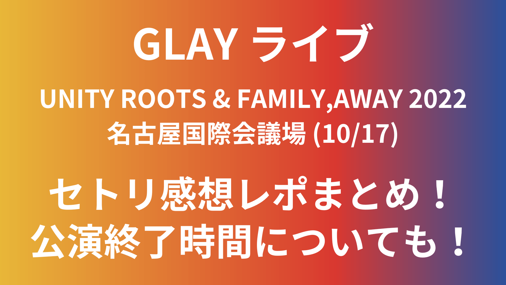 GLAYのライブ「GLAY Anthology presents -UNITY ROOTS & FAMILY,AWAY 2022-」の名古屋公演が10月17日(火)に開催されます。