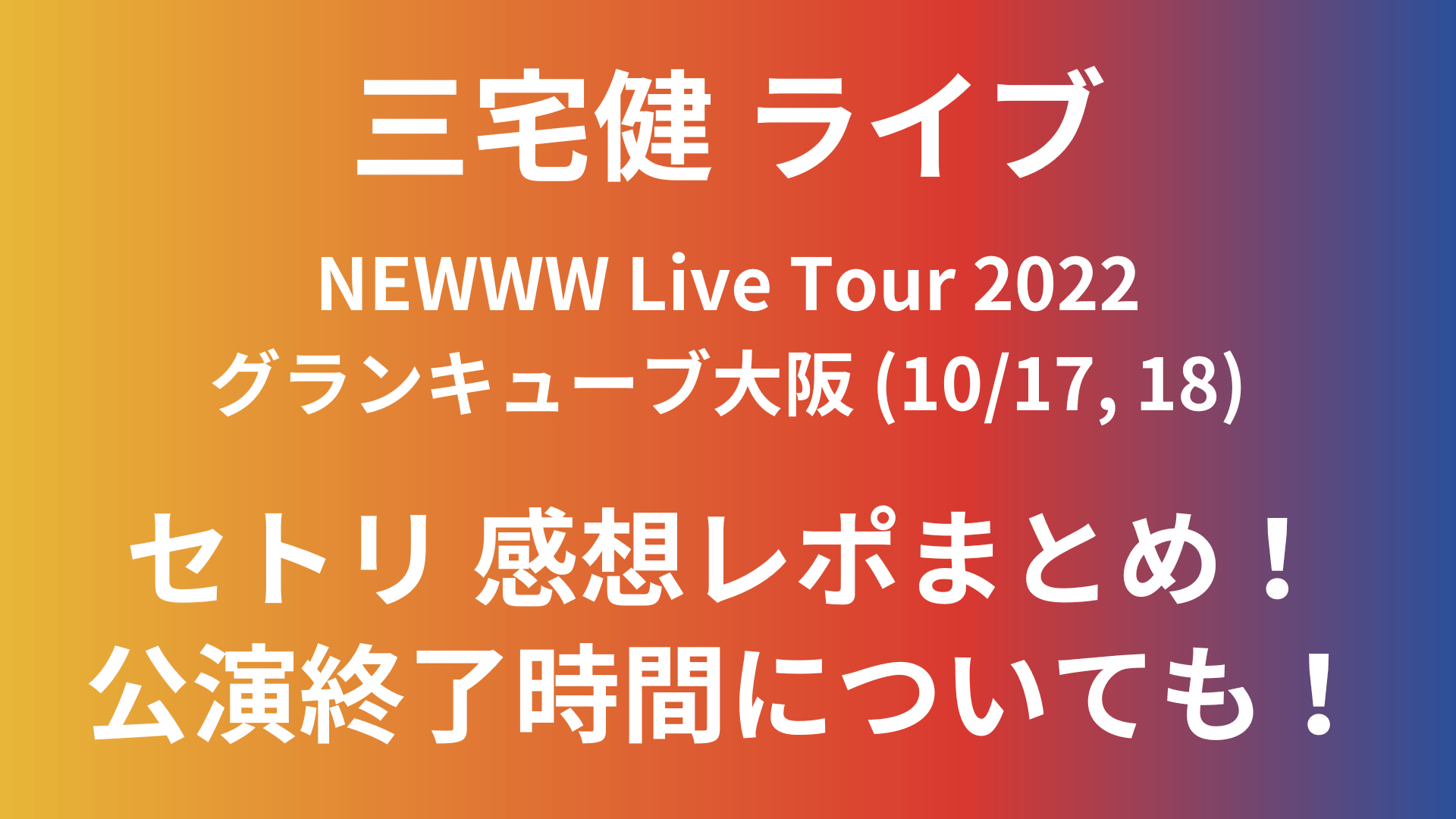 今回は「三宅健ライブ2022大阪のセトリ感想レポ!公演終了時間についても!(10/17~10/18)」と題して以下についてまとめています。