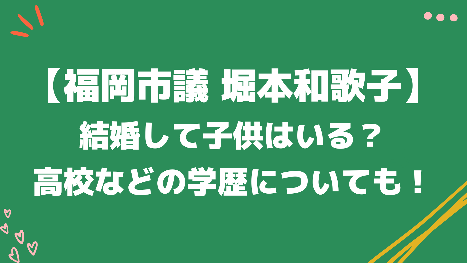 堀本和歌子議員は結婚されていないので、子供はいないということになります。