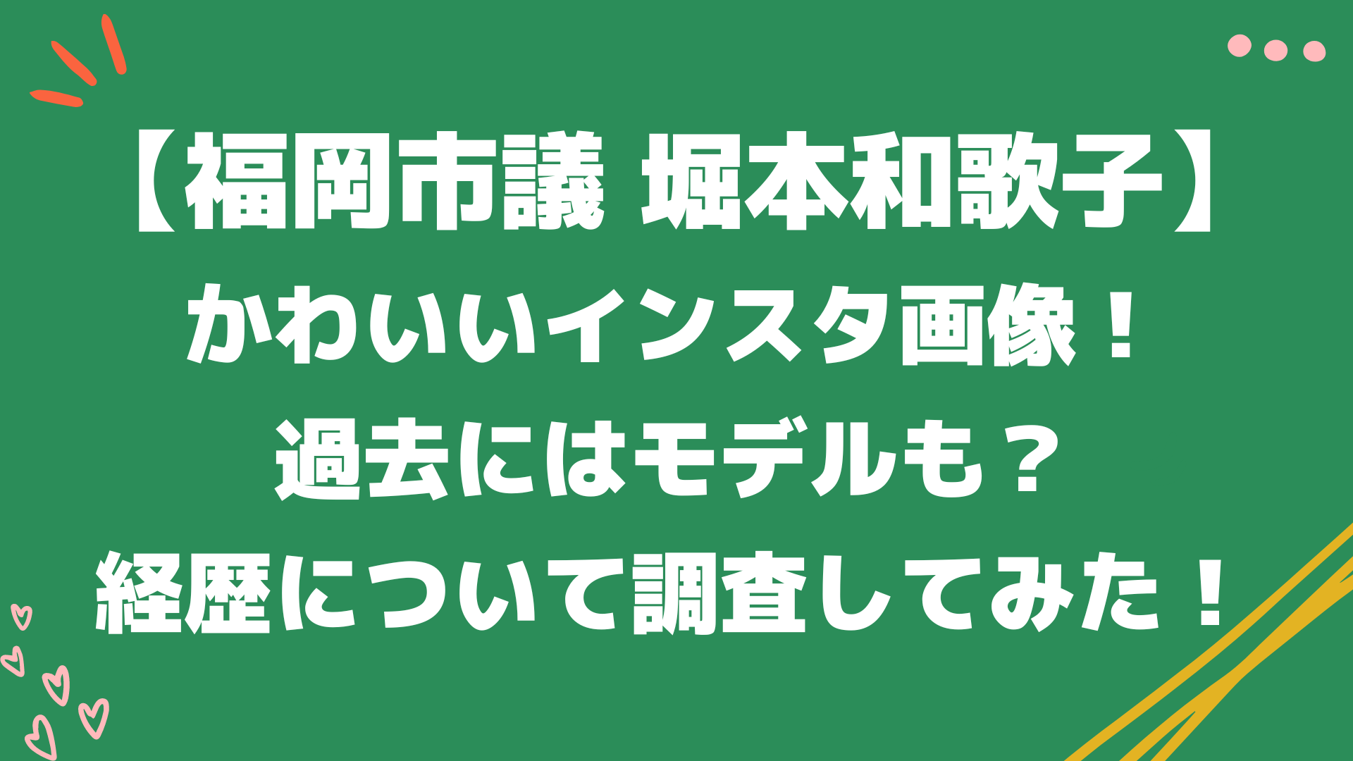 福岡市議会議員の堀本和歌子議員がかわいいと話題になっていますね。