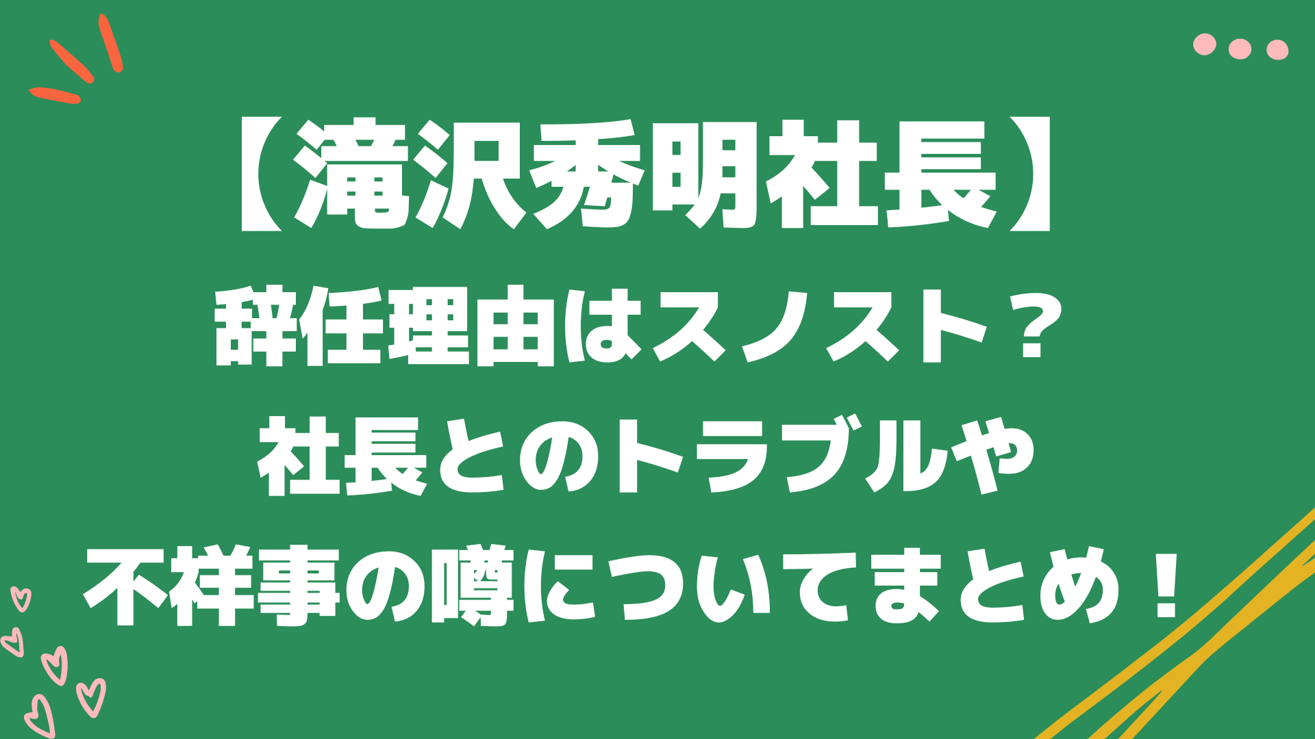 今回は「滝沢秀明の辞任理由はスノスト?社長とのトラブルや不祥事の噂まとめ!」と題して以下についてまとめています。