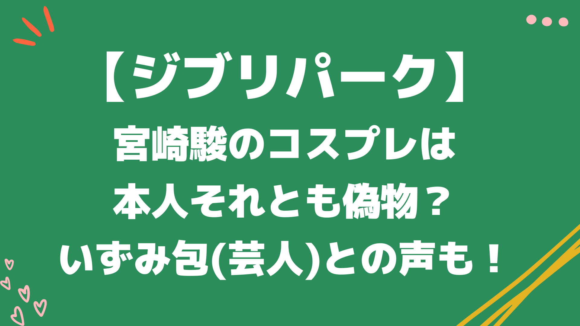 今回は「宮崎駿のコスプレは本人それとも偽物?いずみ包(芸人)との声も!」と題して以下についてまとめています。