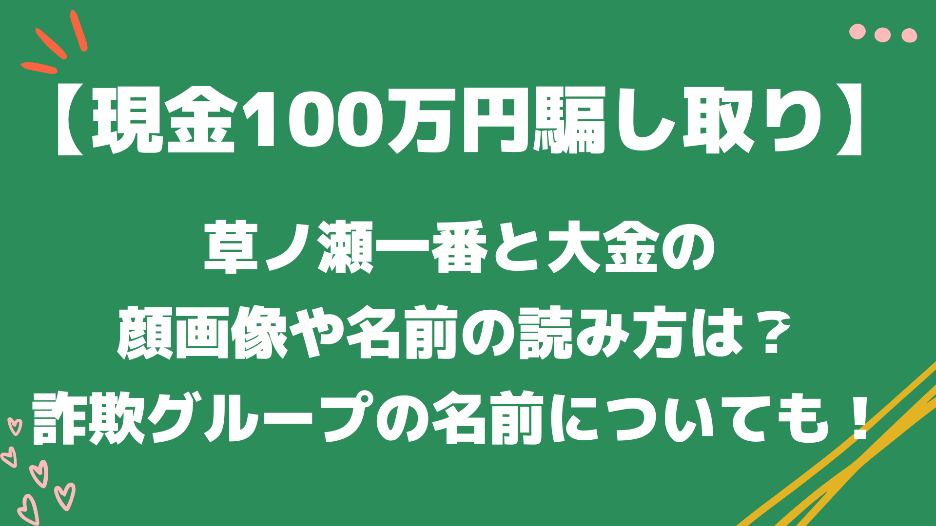 ・草ノ瀬一番と大金の所属詐欺グループの名前は?
