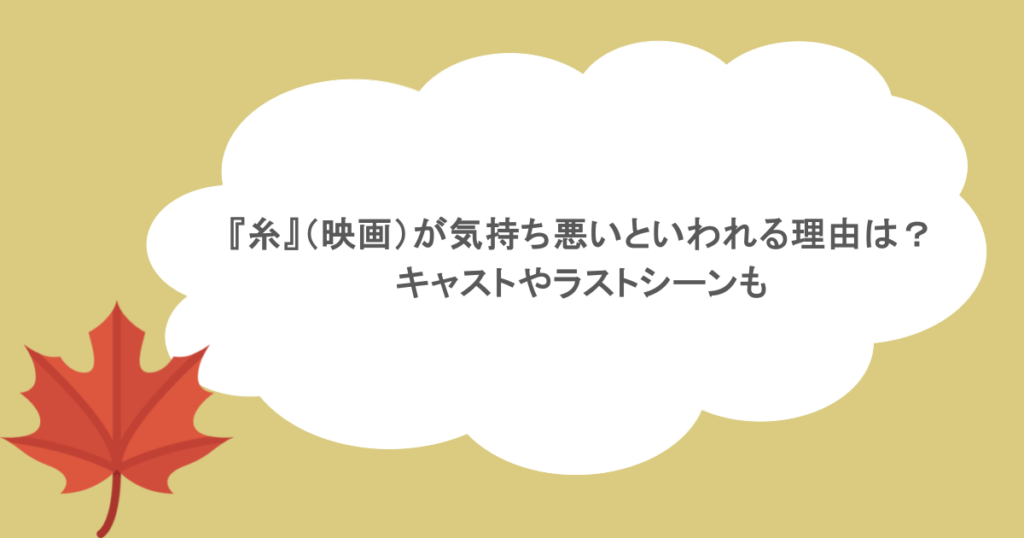 中島みゆきさんの名曲「糸」をもとに製作された映画『糸』。菅田将暉さんと小松菜奈さんのダブル主演で話題になった作品ですが、検索すると『糸』映画が「気持ち悪い」といったキーワードが出てきます。 感動的な恋愛映画として期待していた観客の中には、... -